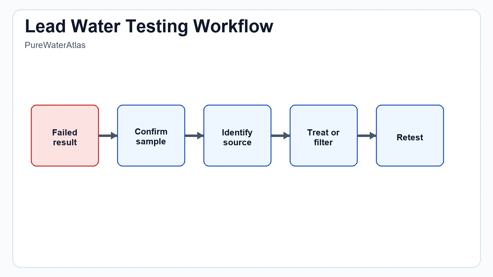 If a result comes back above your comfort level or above applicable guidance, PureWaterAtlas offers a practical next-step resource on what to do if your water test fails.